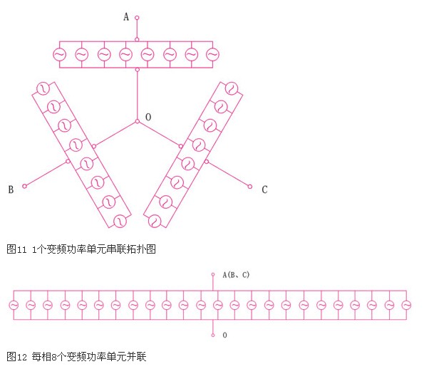 (2)同一個(gè)變流鏈中的各變頻功率單元輸出同相位、同頻率,而且電壓幅值相等;