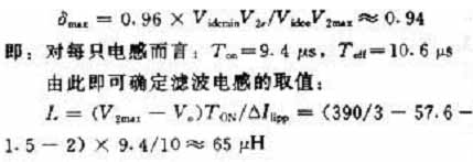 直流輸出LC濾波的工作頻率為100 kHz,通信開關電源整流模塊要求在5%的額定負載下,保證雜音滿足指標。額定情況下,最大占空比: