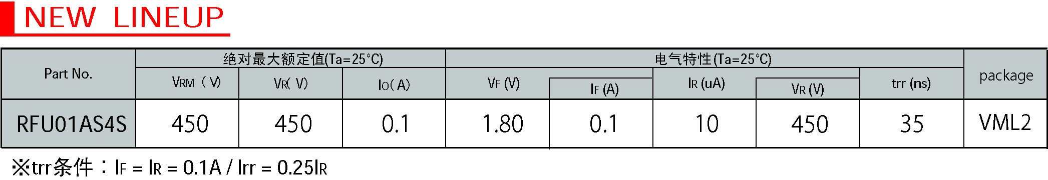 這次,羅姆通過改善結(jié)構(gòu)設計和裝配工藝使封裝得到優(yōu)化,成功開發(fā)出了世界最小的“VML2”封裝(1006尺寸∶1.0mm×0.6mm)快速恢復二極管。與傳統(tǒng)的2513尺寸(2.5mm×1.3mm)相比,體積減少約86%。不僅體積小巧,高達450V耐壓特性也是其特長之一。