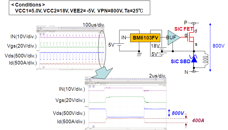 不僅如此,還支持作為新一代功率半導體備受期待的SiC(Silicon carbide:碳化硅)的功率MOSFET的高速開關,非常有助于實現更加高效、更加低功耗的新一代電動汽車。