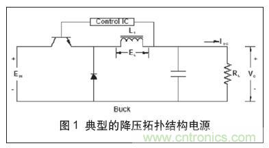 圖1所示為一個降壓拓?fù)浣Y(jié)構(gòu)電源的架構(gòu),該構(gòu)架廣泛應(yīng)用于輸出電壓小于輸入電壓的系統(tǒng)。在典型的降壓拓?fù)浣Y(jié)構(gòu)電路中,當(dāng)開關(guān)(Q1)閉合時,電流開始通過這個開關(guān)流向輸出端,并以某一速率穩(wěn)步增大,增加速率取決于電路電感。根據(jù)楞次定律,di=E*dt/L,流過電感器的電流所發(fā)生的變化量等于電壓乘以時間變化量,再除以這個電感值。由于流過負(fù)載電阻RL的電流穩(wěn)定增加,輸出電壓成正比增大。