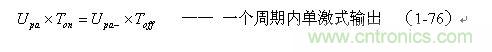 (1-76)式就是計算單激式變壓器開關(guān)電源輸出電壓的表達(dá)式。式中,Upa和Upa-分別稱為單激式變壓器開關(guān)電源輸出電壓的正半波平均值和負(fù)半波平均值。