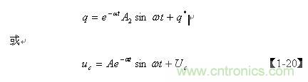 前面已經指出,齊次微分方程【1-12】式僅表示電容Cs充滿電后,輸入電壓等于0時,電容兩端電壓或存儲電荷隨時間變化的過程,即,當t = 0時,q從最大值開始隨時間變化的過程。但齊次微分方程【1-12】式并不完全表示電容Cs充、放電的全過程,我們仔細觀察【1-17】式便知:在LC電路中,當t = 0時,如果q 為最大值,電容一定是按余弦規律放電;如果 q為最小值,則電容一定是按正弦規律充電。因此,我們還需要根據初始條件來對【1-10】非齊次微分方程式進一步求解。