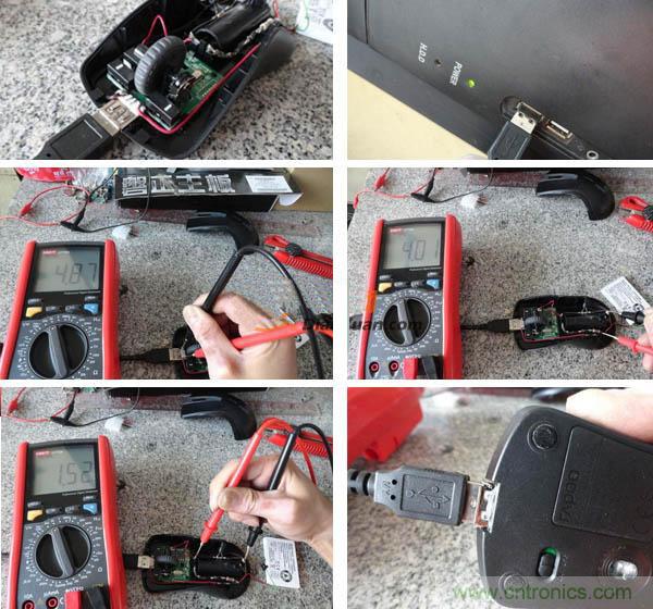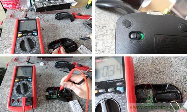 在萬用表測(cè)試后,我們能夠看到接入后USB電壓為4.87V,鋰電池兩端為4.01V。負(fù)載端為1.52V,再次打開鼠標(biāo)電源開關(guān)。出現(xiàn)1.54V,竟然還高了,這個(gè)應(yīng)該關(guān)系到阻抗和容抗問題,水平不夠,不好解釋,反正就當(dāng)它正常了。
