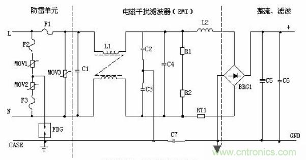 【導讀】開關電源的主要電路是由輸入電磁干擾濾波器(EMI)、整流濾波電路、功率變換電路、PWM控制器電路、輸出整流濾波電路組成。下文將分別介紹開關電源的各種功能電路及其原理。