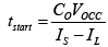在啟動(dòng)開始時(shí),輸出電容器的平均充電電流為正值,充電電流等于(IS-IL),如等式1所示。在VO上升至VOCC之前,輔助匝電壓低于VDD,此時(shí)CDD無法通過輔助匝充電。但在此期間,CDD會(huì)被Irun和柵極驅(qū)動(dòng)電流放電。如果 VDD低于VDD(off),UCC28700器件就會(huì)關(guān)斷。為確保器件順利啟動(dòng),在ta內(nèi)VDD必須大于VDD(off)。在等式8和等式9中,應(yīng)用了一個(gè)臨界條件。Tstart是VO從0上升至VOCC的時(shí)間。等式2是VOCC和VDD(off)的關(guān)系。在等式8 中,有1mA的估計(jì)柵極驅(qū)動(dòng)電流,而且為VDD添加了1V的裕度。VCST是芯片選擇閾值電壓。在啟動(dòng)開始時(shí),UCC28700 VS引腳上的電壓為低,因此VCST保持其最大值。