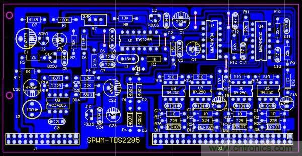 SPWM的驅動核心采用了單片機SPWM芯片TDS2285,所以,SPWM驅動部分相對純硬件來講,比較簡單,制作完成后要調試的東西很少,所以,比較容易成功。