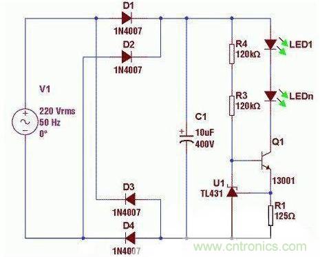 圖2:利用單個(gè)TL431恒流的改進(jìn)型示意圖