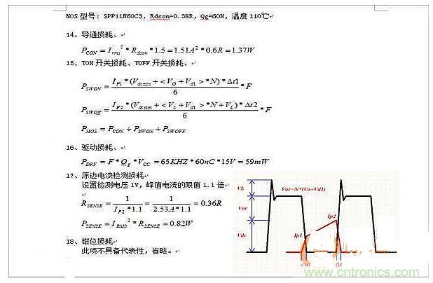 (關(guān)于開關(guān)損耗和導(dǎo)通損耗,上面的計算方法應(yīng)該是正確的,參考《精通開關(guān)電源》第5章。最有可能會出現(xiàn)的問題是,測量的準(zhǔn)確性如何,因為這會導(dǎo)致計算值與實際值相差2--5倍。)