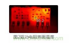 有時,電路參數和性能看似正常,但實際上隱藏很大的問題。如圖 2所示,某電路基本性能沒有問題,但在常溫下,用紅外熱成像儀一測,不得了了,MOS管的驅動電阻表面溫度居然達到95.2℃。長期工作或高溫環境下,極易出現電阻燒壞、模塊損壞的問題。可見,研發過程中使用熱成像儀測試元器件的溫度尤其重要,可及時發現并定位問題點。通過調整電路參數,降低電阻的歐姆熱損耗,且將電阻封裝由0603改成0805,大大降低了表面溫度。
