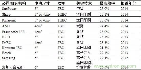 在中國,隨著光伏產業規模的持續擴大,越來越多的光伏企業對IBC電池技術的研發進行投入,如天合、晶澳、海潤等。2013年,海潤光伏報導了研發的IBC電池效率達到19.6%。2011年,天合光能與新加坡太陽能研究所及澳大利亞國立大學建立合作研究開發低成本可產業化的IBC電池技術和工藝。