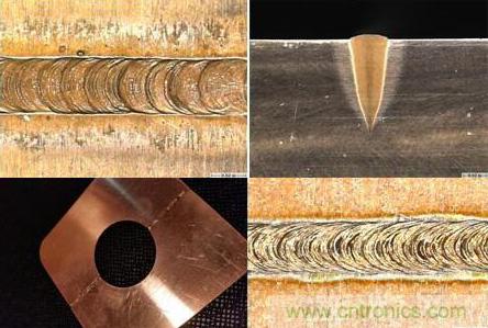 (圖片說明:510系列銅焊接縫(a)及其橫截面(b),以及純101系列銅焊接接縫(c)與航節后的采樣部分(d)。)
