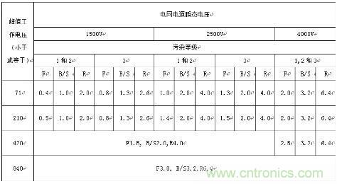 1、根據交流電網電壓有效值和過電壓類別確認交流電網電源瞬態電壓(由附錄Z和表2J確定);
