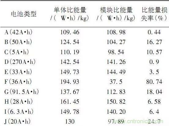如下表所示試驗對象均為電池模塊:
