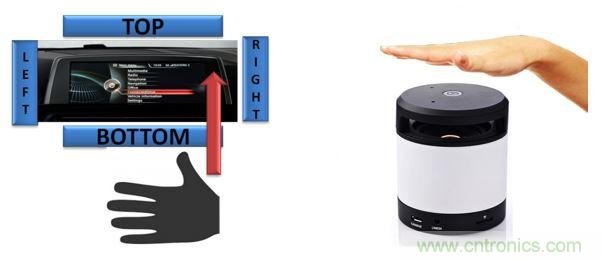 基于手勢的輕薄用戶界面─ 特殊的手勢在提高用戶體驗方面發揮著關鍵作用。不同的手勢功能可幫助物聯網制造商區分其產品在市場上的地位。例如,一款無線藍牙揚聲器可直接通過不同的手勢來控制音量、上下曲等。手勢功能已逐漸成為用戶界面最簡單直觀的形式之一。智能手勢包括:向左右任意方向滑動、單擊、雙擊、長按鍵等等。設備可以由指定的用戶手勢“喚醒”,因此手勢功能不僅可以簡化UI,而且還能夠降低功耗。
