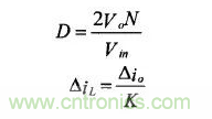 輸出濾波電感值的計算首先要滿足輸出電流紋波△i0的要求,在滿足紋波要求的前提下,盡量選擇較小的電感,以提高變換器的動態性能。