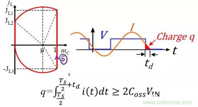 要回答這個定量問題,其實是不那么簡單的。對于PWM converter,參考quasi-square-wave ZVS buck converters,我們是可以畫出state plane,然后根據(jù)state plane圖的幾何關(guān)系定量分析出來的,但是非常繁瑣,常常是七八個三角函數(shù)等式求解。所以我個人愚見,在設(shè)計上,就讓開關(guān)頻率小點,電感值小點,讓電感電流ripple足夠大,能達(dá)到負(fù)值就差不多了。對于resonant converter,倒是可以簡單地通過積分方法,算出i與t的積分,讓這個it積分大于Coss上的charge就行。比如已知impedance,算出V與I的phase shift,然后換算成時間td,然后在td上對電感電流進(jìn)行積分,只要這個積分大于等于Coss*Vin就行了。