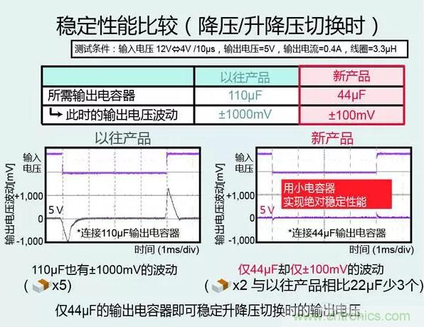但是與降壓型轉(zhuǎn)換器相比,以往的升降壓型轉(zhuǎn)換器控制復(fù)雜且響應(yīng)性能較差,輸出需要大容量電容器。升降壓轉(zhuǎn)換器的缺點(diǎn)已是長(zhǎng)期存在的問(wèn)題。