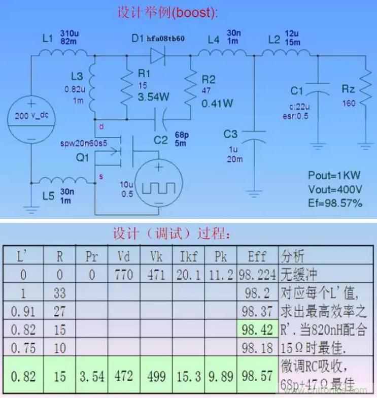 適當的緩沖電感(L3)參數可以大幅度減少開關管損耗,實現高效率。