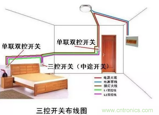 臥室雙控的布線圖
