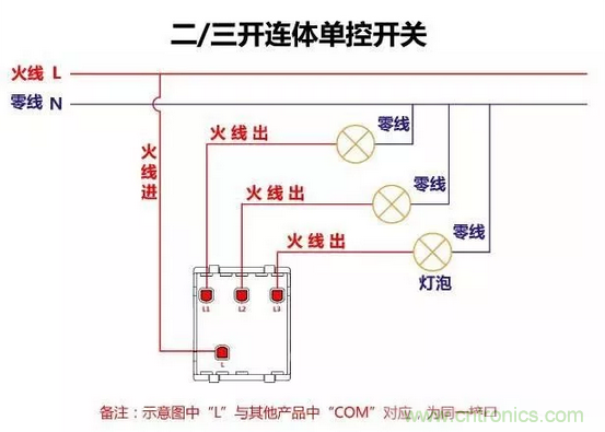 二三開連體單控開關接線圖