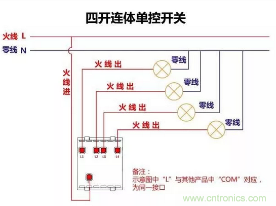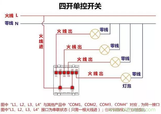 四開單控開關接線圖