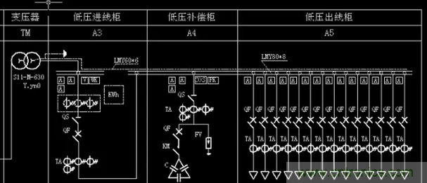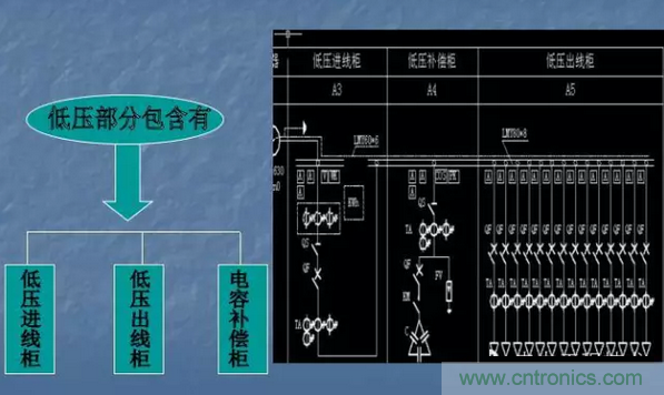 1.低壓進線柜;2.低壓出線; 3.低壓補償柜