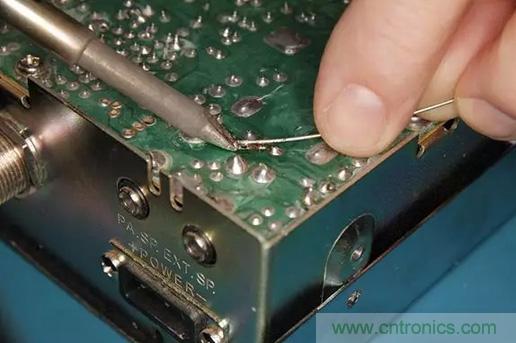接下來修剪多余的電線至焊點處,并用助焊劑清潔劑對焊點進行清理。
