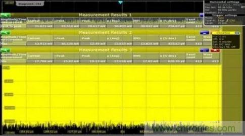 根據(jù)傳統(tǒng)電源調(diào)試經(jīng)驗(yàn),首先在該網(wǎng)絡(luò)上增加了一些去耦電容,增加電源網(wǎng)絡(luò)的阻抗余量, 保證在中頻段的電源網(wǎng)絡(luò)阻抗都能滿足該應(yīng)用場(chǎng)景的需求。結(jié)果紋波僅降低幾mV,改善微乎其微。產(chǎn)生這個(gè)結(jié)果有幾個(gè)可能:1、噪聲處在低頻,并不在這些去耦 電容起作用的范圍內(nèi);2、增加電容影響了電源調(diào)節(jié)器VRM的環(huán)路特征,電容帶來(lái)的阻抗降低與VRM的惡化抵消了。帶著這個(gè)疑問(wèn),我們考慮使用示波器的頻域 分析功能來(lái)查看電源噪聲的頻譜特性,定位問(wèn)題根源。
