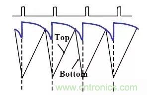 當輸入電壓比輸出電壓高△V時,開關管D保持常開,開關管C保持常關,開關管A和B工作于同步的Buck模式。其工作原理與一般的同步的Buck工作原理完全相同,控制的方法為谷點電流模式,如圖2所示,其中D為占空比。