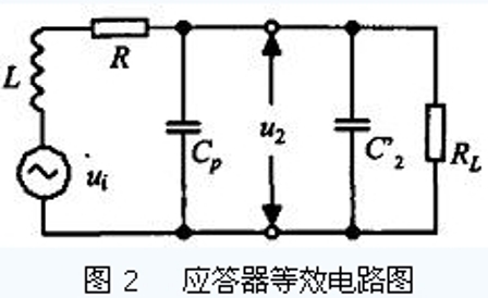 當(dāng)RFID 的線圈天線進(jìn)入讀寫(xiě)器產(chǎn)生的交變磁場(chǎng)中,RFID 天線與讀寫(xiě)器天線之間的相互作用就類(lèi)似于變壓器,兩者的線圈相當(dāng)于變壓器的初級(jí)線圈和次級(jí)線圈. 由RFID 的線圈天線形成的諧振回路如圖2所示,它包括RFID 天線的線圈電感L 、寄生電容Cp和并聯(lián)電容C2′,其諧振頻率為: