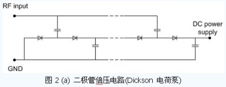 電源恢復(fù)電路將RFID 標(biāo)簽天線所接收到的超高頻信號通過整流、升壓等方式轉(zhuǎn)換為直流電壓,為芯片工作提供能量。電源恢復(fù)電路具有多種可行的電路結(jié)構(gòu)。如圖2 所示是目前常用的幾種電源恢復(fù)電路。