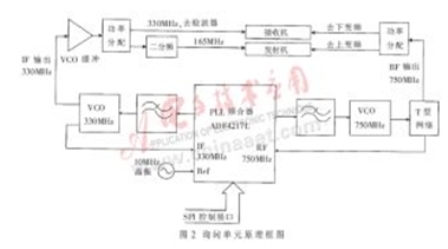 圖2為詢問單元方框圖。它由發(fā)射機(jī)、接收機(jī)、本地振蕩模塊等部分組成。