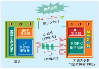 在這些應用中,基站用125 kHz頻率發送命令,同時等待附近的有效應答器以UHF頻率發回響應。智能應答器一般處于接收模式并等待任何有效的125kHz基站命令。如果接收到任何有效的基站命令,應答器以UHF頻率發送響應。這就是我們所說的“無源無鑰匙門控系統”。由于PKE系統采用125kHz電路進行雙向通信,因此低成本、小體積及低功耗PKE應答器可使用含有數字與低頻前端的集成系統級芯片(SoC) 智能微控制器單元(MCU)來生產。