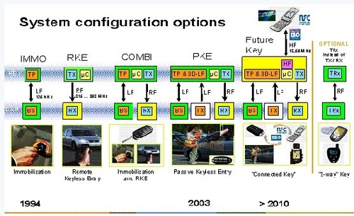 2003,NXP推出了無(wú)鑰匙系統(tǒng)(PKE或稱PEPS),徹底改變了汽車安防應(yīng)用領(lǐng)域的發(fā)展前景,給用戶帶來(lái)了全新舒適與便利的體驗(yàn):車主在整個(gè)駕車過(guò)程中都完全不需要使用鑰匙,只需要隨身攜帶。當(dāng)車主進(jìn)入車子附近的有效范圍時(shí),車子會(huì)自動(dòng)檢測(cè)鑰匙并進(jìn)行身份識(shí)別,如成功會(huì)相應(yīng)的打開車門或后備箱;當(dāng)車主進(jìn)入車內(nèi),只需要按引擎啟動(dòng)按鈕,車子會(huì)自動(dòng)檢測(cè)鑰匙的位置,判斷鑰匙是否在車內(nèi),是否在主駕位置,如成功則發(fā)動(dòng)引擎。千萬(wàn)不要小瞧這個(gè)看似不起眼的改變,它在簡(jiǎn)化你的生活方面發(fā)揮著重大作用。無(wú)鑰匙系統(tǒng)絕不僅僅是帶來(lái)了舒適與方便,其在安全性方面也有了本質(zhì)的提高,通過(guò)低頻和射頻的雙向通訊,汽車與鑰匙之間可以完成復(fù)雜的雙向身份認(rèn)證,在安全性方面與引擎防盜類似,要遠(yuǎn)好于傳統(tǒng)的遙控鑰匙。從2003年少量高端車型成功量產(chǎn)無(wú)鑰匙系統(tǒng)開始,全球市場(chǎng)用了兩到三年的時(shí)間推廣普及這一技術(shù),目前,幾乎全球每一個(gè)主流車廠都有應(yīng)用NXP的無(wú)鑰匙產(chǎn)品,覆蓋中高端的車型,甚至是低端車型。