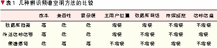 認(rèn)知無(wú)線電(CR)概念由Joseph Mitola博士提出,其主導(dǎo)思想是實(shí)現(xiàn)伺機(jī)的動(dòng)態(tài)頻譜接入,即非授權(quán)用戶(也稱次用戶或認(rèn)知用戶)通過檢測(cè),機(jī)會(huì)性地接入已分配給授權(quán)用戶(或主用戶) 但暫時(shí)很少使用甚至未被使用的空閑頻段,一旦主用戶重新接入該頻段,次用戶迅速騰出信道。這種技術(shù)需解決的首要問題就是如何快速準(zhǔn)確地獲取授權(quán)頻譜的使用情況,目前主要有3類解決方案:建立數(shù)據(jù)庫(kù)檔案、傳送信標(biāo)信號(hào)和頻譜感知。表1從多個(gè)方面對(duì)3種方案進(jìn)行了比較,其中頻譜感知方案因具有建設(shè)成本低、與現(xiàn)有主系統(tǒng)的兼容性強(qiáng)等突出優(yōu)點(diǎn),得到了大多數(shù)研究學(xué)者的認(rèn)同;另外兩種由于受到政治、經(jīng)濟(jì)等因素的制約而很難實(shí)現(xiàn),對(duì)其研究相對(duì)較少。