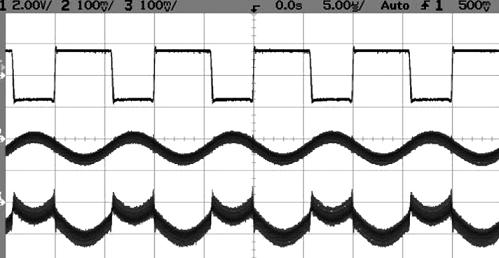 電壓測量部分的帶寬(LT1632和LT1995)為8.7MHz,100kHz方波輸入的保真性好。LT1632的輸出擺動限制共模電壓(H橋電源電壓)低于45V。增大LT1632的衰減還可擴大此范圍(用100kΩ電阻替代10kΩ可使衰減提高十倍,這樣共模輸入范圍可達450V)。