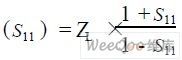 在載波頻率為13. 56 MHz時,通過在TX1 和TX2 兩點(diǎn)測量天線線路的反射系數(shù)(即參數(shù)S11 )來手動調(diào)諧,直到天線電路的輸入阻抗達(dá)到目標(biāo),計算方程如下:
