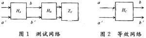 圖1中網絡HA,HB,ZX組成測試網絡,圖2中HC為其等效網絡。HA,HB為無源線性雙口網絡,起著匹配、隔離和濾波的作用,使得在bb′處能觀測到比較好的正弦波。HC的傳輸函數可以表示為: