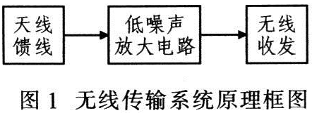 圖1為無線傳輸系統原理框圖。接收端的功率放大電路模塊由于信道具有衰減特性,經遠距離傳輸到達接收端的射頻信號電平多是μV數量級,因此需放大微弱的射頻信號。同時,信道中還存許多干擾信號,即噪聲,所以該系統設計應采用低噪聲的射頻功率放大電路。