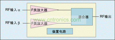 使用異相技術(shù)時(shí),分放大器的選擇至關(guān)重要,F(xiàn)類放大器特別適合工作于此模式。F類放大器不是線性的,但是作為異相放大器系統(tǒng)中的分放大器它工作于固定振幅,其實(shí)這一點(diǎn)并不重要。F類放大器在二次諧波和三次諧波采用特殊的終結(jié)方法,使放大器晶體管在“開”時(shí)電壓最小,從而減小開關(guān)設(shè)備中的功率損耗。該類放大器的峰值輸出功率與漏電壓平方成正比,因此可用Vdd電源電壓來設(shè)定平均輸出功率,可將Vdd設(shè)定為對(duì)于任何平均輸出功率放大器均運(yùn)行于可能達(dá)到的最大效率。