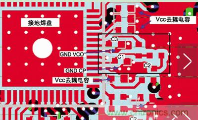 在本文的后面部分將會看到,PLL的實現(xiàn)在系統(tǒng)設(shè)計中總是面臨巨大挑戰(zhàn),要想獲得滿意的雜散特性必須有良好的地線布局。目前,IC設(shè)計中將所有的PLL和VCO都集成到了芯片內(nèi)部,大多數(shù)PLL都利用數(shù)字電流電荷泵輸出通過一個環(huán)路濾波器控制VCO。通常,需要用二階或三階的RC環(huán)路濾波器濾除電荷泵的數(shù)字脈沖電流,得到模擬控制電壓。靠近電荷泵輸出的兩個電容必須直接與電荷泵電路的地連接。這樣,可以隔離地回路的脈沖電流通路,盡量減小LO中相應(yīng)的雜散頻率。第三個電容(對于三階濾波器)應(yīng)該直接與VCO的地層連接,以避免控制電壓隨數(shù)字電流浮動。如果違背這些原則,將會導(dǎo)致相當大的雜散成分。