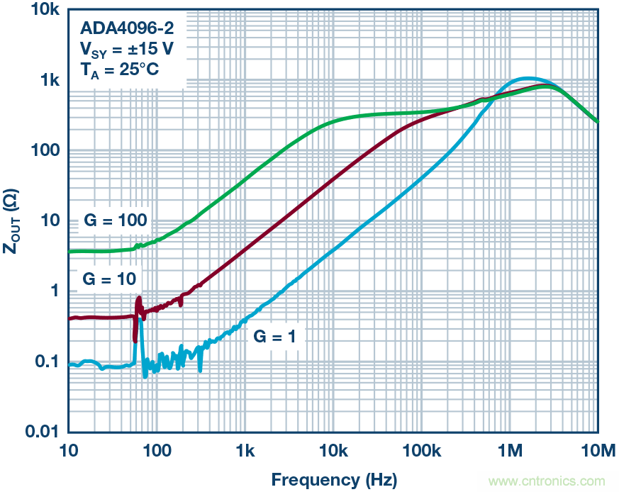 圖8b. ADA4096-2數(shù)據(jù)手冊中的閉環(huán)阻抗圖