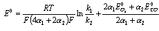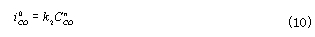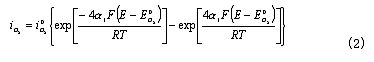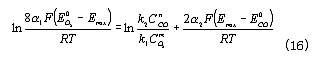 為CO的交換電流密度;a為CO氧化反應的電荷傳遞系數。——— 在平衡條件下,上述兩反應的電流密度相等,所以有