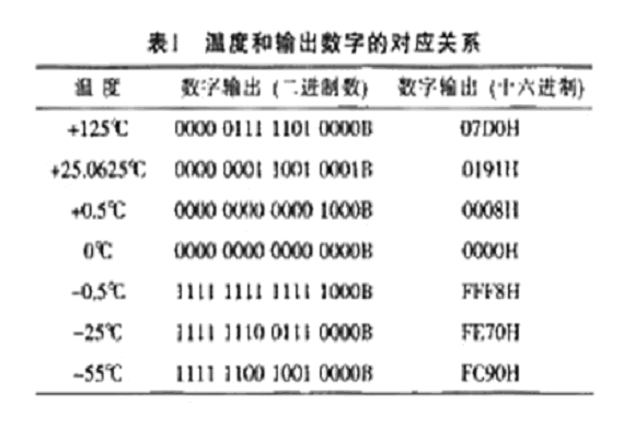 DS18B20溫度傳感器主要用于對溫度進行測量,數(shù)據(jù)可用16位符號擴展的二進制補碼讀數(shù)形式提供,并以0.0625℃/LSB形式表示。具體的溫度和數(shù)字量的關(guān)系如表1所列。