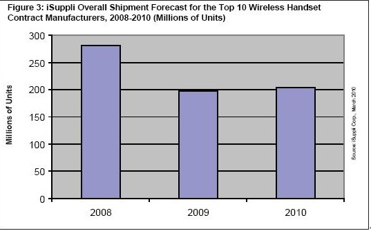 據iSuppli公司,2010年頂級手機合同制造商將面臨困境。去年這些廠商顛覆了長期的商業模式,而且發生了前所未見的虧損。