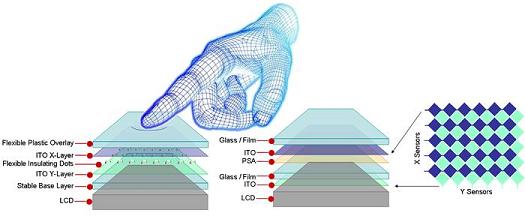 我們將深入了解一下兩個最常用的觸摸屏技術。使用最廣泛的技術是阻性觸摸。絕大多數人可能以前都在銀行的ATM機上、許多商場里的信用卡檢查機、甚至是在餐館里輸入一個訂餐單時用過這類阻性觸摸技術。而投影型容性觸摸屏,使用的范圍還沒有這么廣,但具有快速發展動力。許多采用投影型容性界面的手機和便攜式音樂播放器都在投放市場。無論是阻性或容性技術都有一個堅固的電組件,都利用ITO(氧化銦錫,透明導體),這兩種技術都會長期使用。