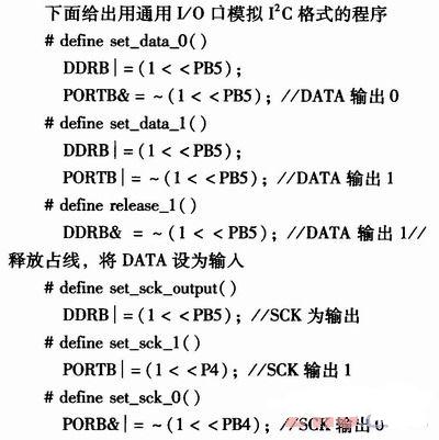 基于以上宏定義,可以方便地使SCK和SDA總線輸出持續(xù)一定時(shí)間的高電平或低電平,從而實(shí)現(xiàn)傳感器的讀寫。