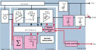 為消除此噪聲對輸出信號的影響,另一封裝中裝入了信號處理專用集成電路(ASIC)。后者也包含一個線路驅動器,以便為信號處理和高電壓接口提供電源電壓(圖 1)。圖 4 所示為信號處理架構。用于故障排除的中心元件為包括調式放大器、偏移抵消電路和智能比較器。根據傳感器和編碼器輪之間的距離,可調式放大器可以與信號級匹配。對于偏移抵消電路,有一種控制系統(與高通濾波器不同)可消除偏移,同時將系統頻率保持為 0?Hz。否則,就不可能檢測到停止不動的編碼器輪。智能比較器的臨界值是可變的,并且可設置,使磁滯處于信號振幅的 20% 和 45% 之間。這可確保充分抑制噪聲,而且振幅突降達 50% 也不會影響系統的正常運轉。模擬前端的個別組件控制則通過數字接口實現。所述系統均利用仿真技術開發和驗證。下文將概略介紹系統開發,同時闡述如何使用模型來改進設計。