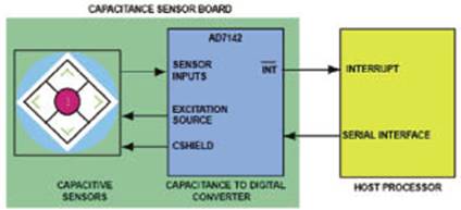 電容觸摸傳感器接口通常由一個電容傳感器、一個電容數(shù)字轉(zhuǎn)換器(CDC)和一個主處理器組成(圖1)。傳感器利用標(biāo)準(zhǔn)兩層或四層PCB上的走線(trace)或柔性電路制造,因此不需要任何外部元件或材料。